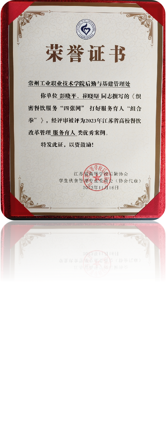 入选2023年度江苏省高校餐饮改革管理服务育人类优秀案例