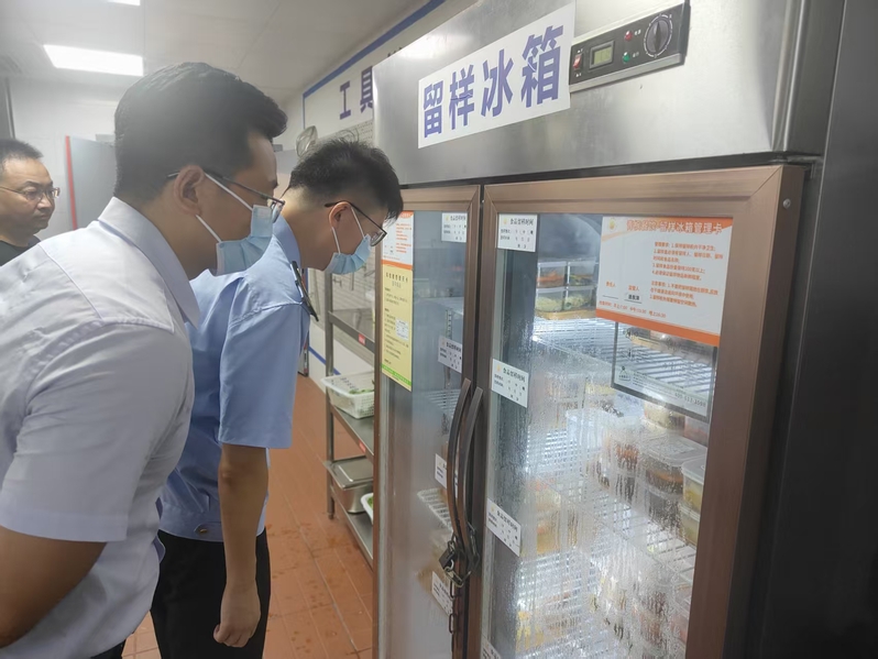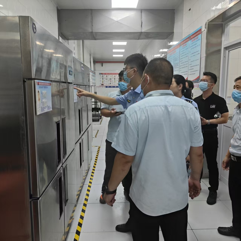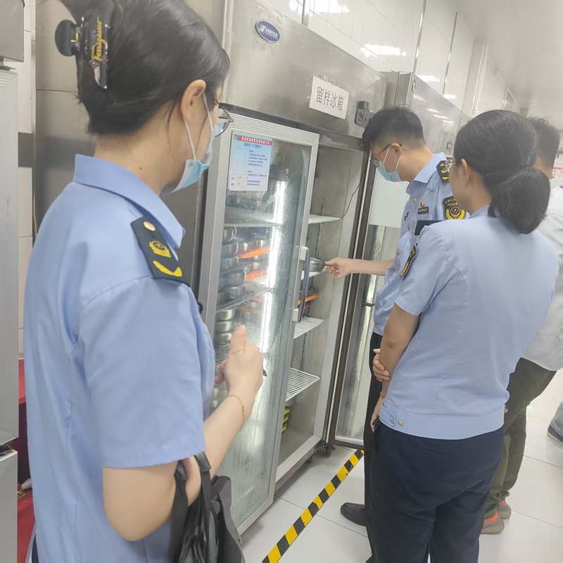 9月24日,武进区市场监督管理局湖塘分局专项检查组则以“细化操作规范”为重点,对我校所有食堂进行全环节“地毯式”排查。检查组深入粗加工区、烹饪间、备餐间、留样室等关键区域,逐一检查食材清洗切配流程、冰箱内存储食材是否规范、主辅食材库及餐具消毒记录,确保操作规范;严格核查了留样品种、数量及保存时间,确保做到“专人负责、记录完整”;核验了食品添加剂管理“五专”制度执行情况,杜绝违规使用的风险。此外,检查组还随机抽查了从业人员健康证明,确保所有直接接触食品人员资质合规有效。检查组对我校食品卫生安全工作给与了充分肯定,对检查过程中存在的个别细节问题,如部分食材存储标签不够清晰、备餐间调料罐未及时加盖、更衣室设施设备等问题提出了整改指导意见,相应问题立行立改,确保问题整改闭环管理。